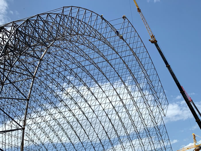 (2)网架加工前应对现场尺寸进行复测,确认无误后方可进行加工、安装;网架制作、运输、安装应遵守《空间网格结构技术规程》JGJ7-2010、《钢网架济源螺栓球节点》JG/T 10-2009、《钢网架济源螺栓球节点用高强度螺栓》 GB/T 16939-2016、《济源钢结构济源工程济源施工规范》 GB50755-2012、《济源钢结构济源工程济源施工质量验收标准》 GB50205-2020。